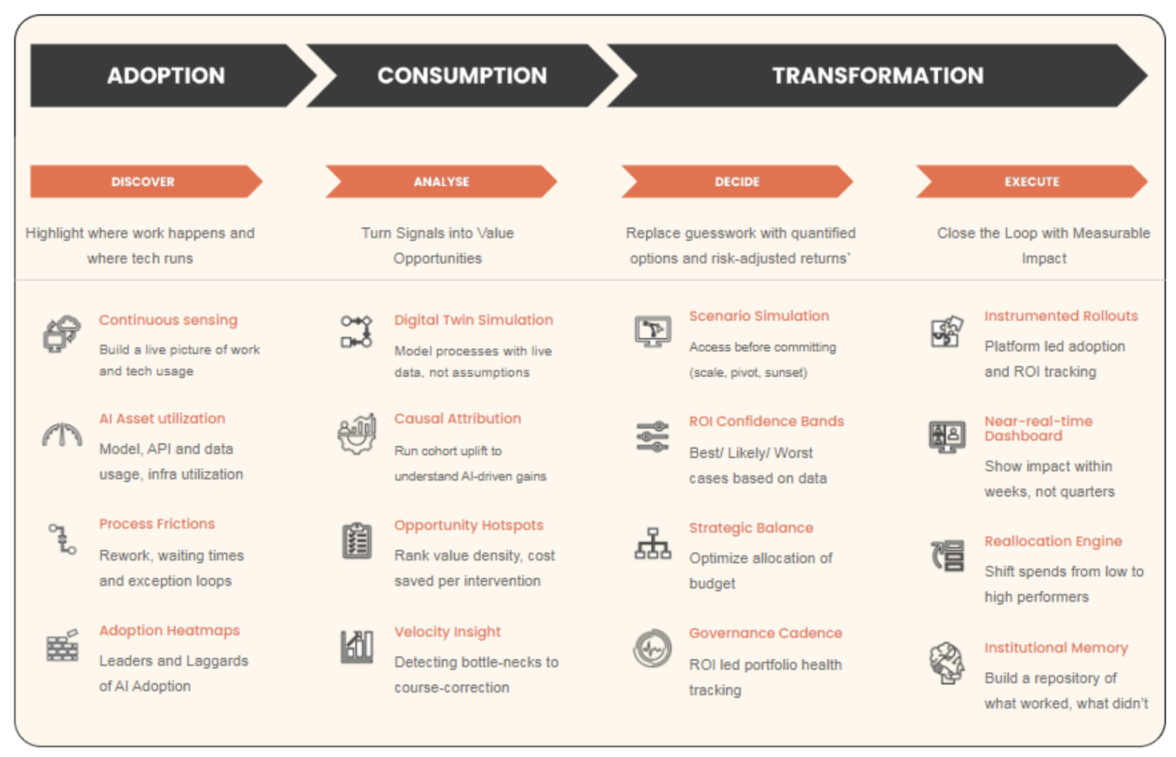 A structured, data-backed approach to move from fragmented AI activity to a single, continuous engine that measures, optimizes, and scales business value